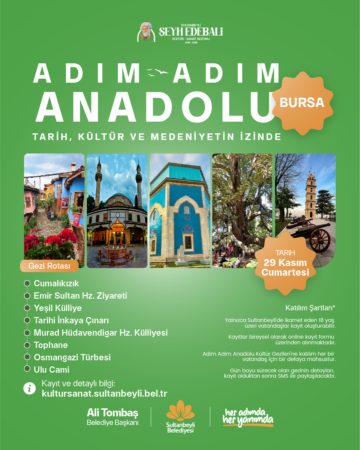 Adım Adım Anadolu Kültür Gezileri farklı rotalarla devam edecektir. Kayıtlar yalnızca online olarak yapılmaktadır. Diğer gezilerin duyurularından haberdar olmak için sosyal medya hesaplarımızı takip ediniz ve favorilere ekleyiniz.